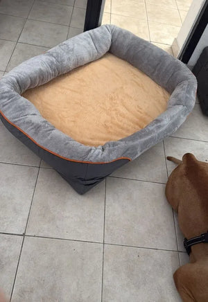 The high-density orthopedic foam evens pressure across hips and joints, reducing soreness and helping older dogs stand, climb stairs, and move with less discomfort.