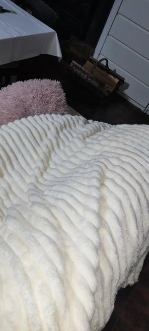 Dog stress during storms and loud noises solved with soft blanket